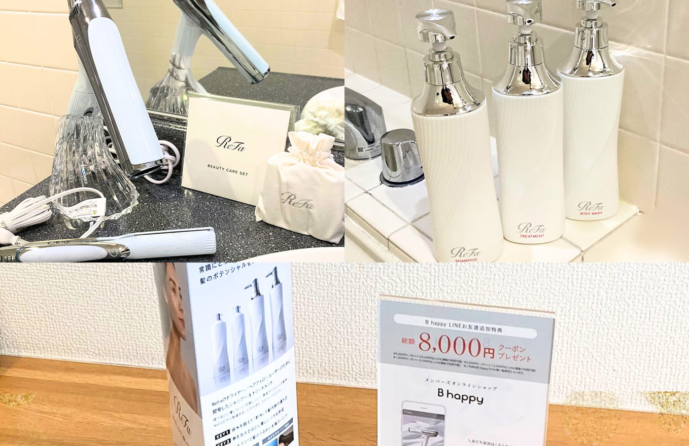 さらに、ReFa商品を取り入れた"ReFaルーム"としてリニューアル。シャワーヘッドやドライヤー、ヘアアイロンなどを備え、ワンランク上の美容体験もお楽しみいただけます。